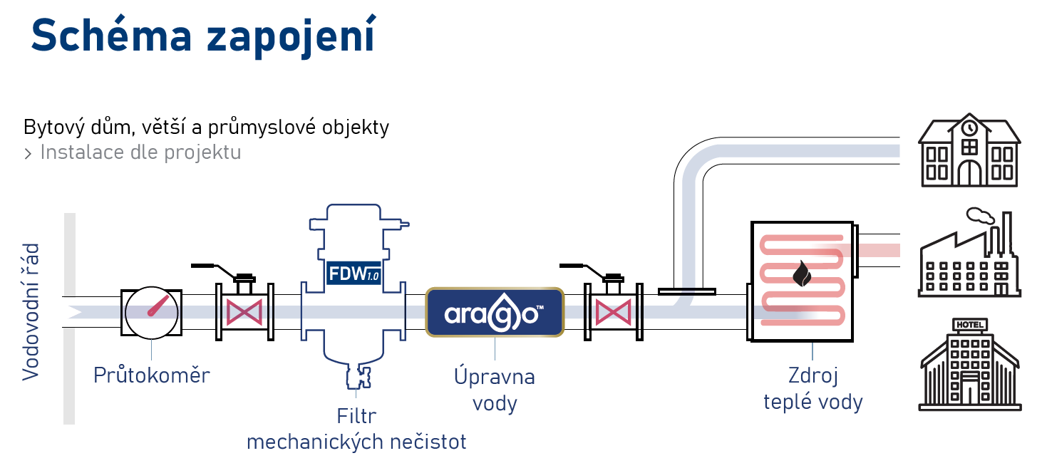 ARAGO industrija je ionski sistem za obradu izvorske vode, koji sprečava stvaranje kalcijumskih naslaga i koroziju. Namenjen je za korišćenje u stambenim zgradama, bolnicama, školama, trgovinskim centrima, administrativnim zgradama, restoranima i hotelima. Takođe se može koristiti u poljoprivredi, na primer za sisteme navodnjavanja, toplotne izmjenjivače i rezervoare. Zahvaljujući svom delovanju, značajno produžava životni vek instaliranih uređaja (npr. kotlova, grejnih spirala, cevi).
