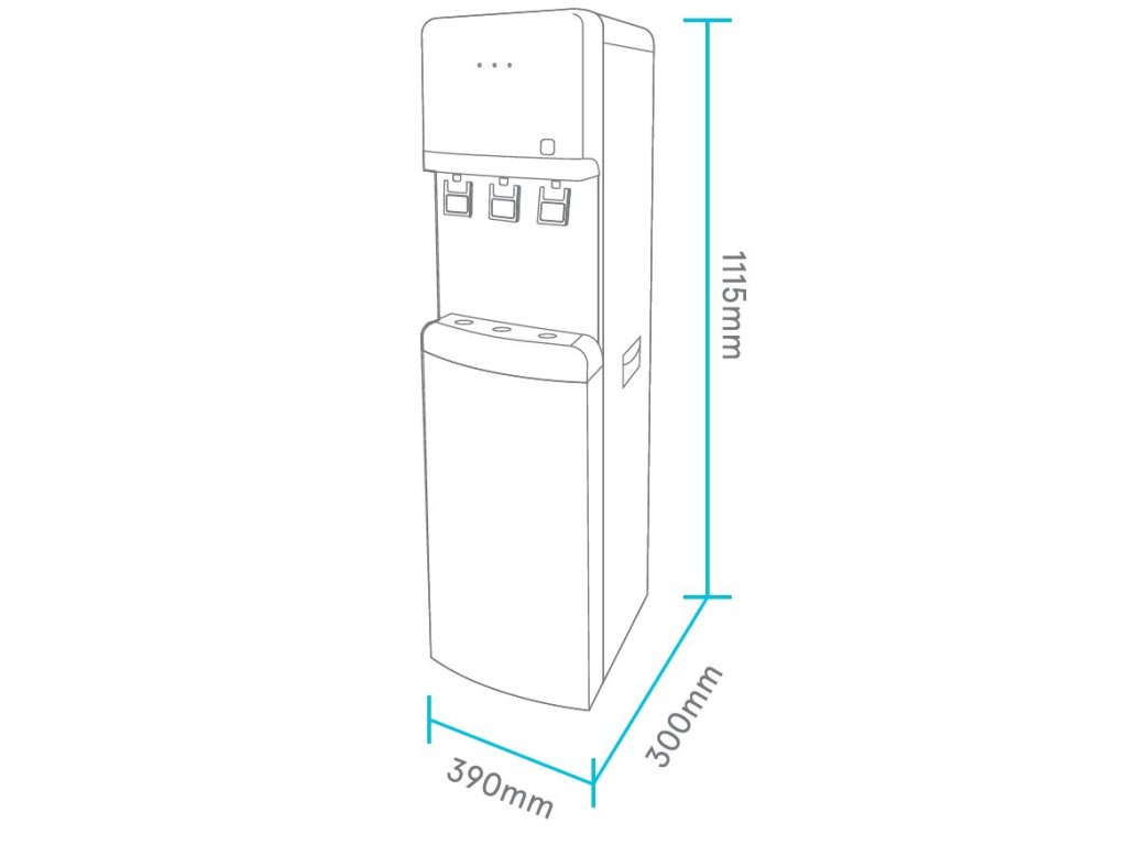 Moderna isporučitelj vode u crnoj boji s priključkom na vodovodnu mrežu. Idealno za urede, hodnike i svuda gdje trebate imati zahvaljujući isporučitelju neprekidno hladnu, sobnu i toplu vodu pri ruci. Proizvodi 5 litrа hladne i 4 litre tople vode po satu.