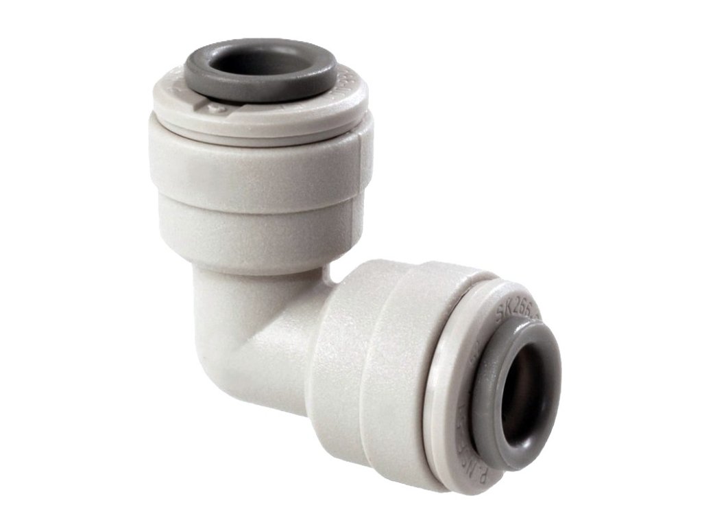 Brza spojka u obliku koljenice za efikasno i prostorno štedljivo spajanje crijeva pod kutom od 90°. Pogodna za dozatore vode i filtracijske sustave. Jednostavna montaža bez alata.