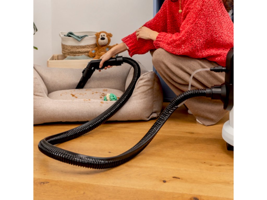 Duga, vrlo fleksibilna usisna cijev i integrirana prskajuća cijev pružaju maksimalnu udobnost pri čišćenju. Drška s funkcijom zaključavanja omogućuje neprekidno prskanje, idealno za čišćenje većih tekstilnih površina.