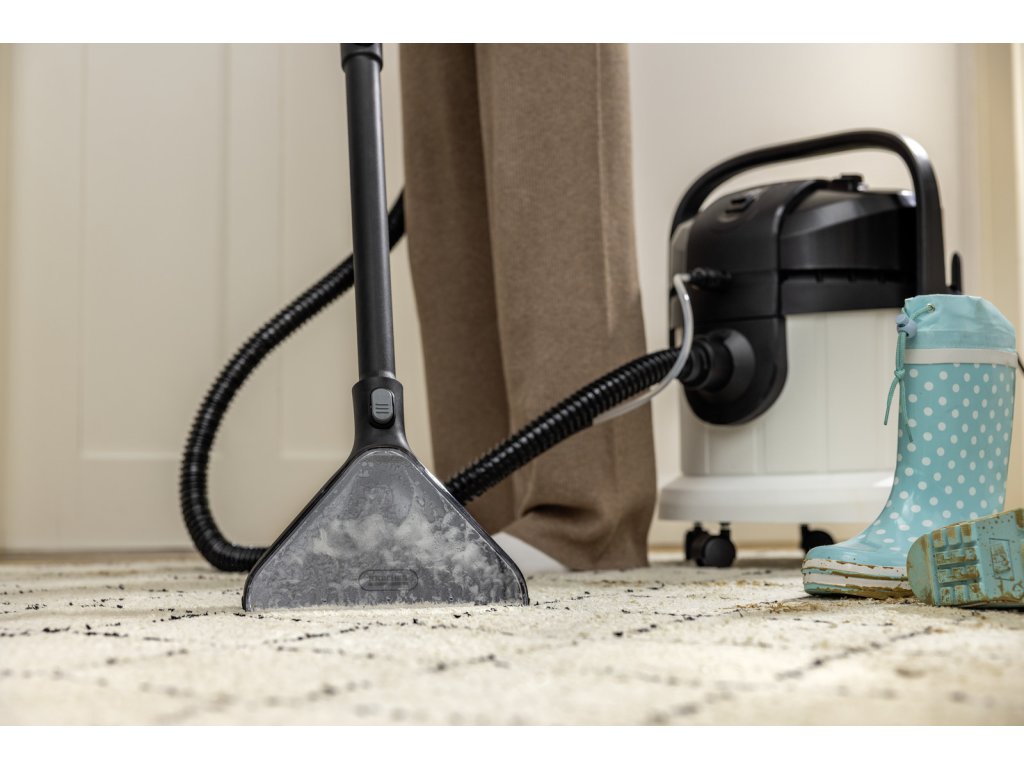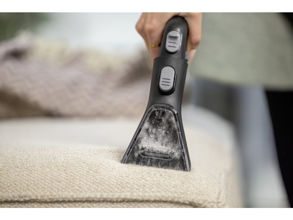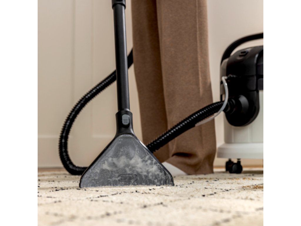 Zahvaljujući integriranoj vakuumskoj cijevi i posebnoj mlaznici za tapeciranje, savladat će i nečistoće duboko u vlaknima tekstila koje će pod pritiskom osloboditi i usisati. Inovativna tehnologija mlaznica dodatno jamči da površine nakon čišćenja ostaju gotovo suhe. Stoga je prikladan za redovito održavanje. Među njegovim dodatnim prednostima su svestrana upotreba, jednostavno rukovanje, kompaktne dimenzije i praktično punjenje i pražnjenje četverolitarne posude za čistu vodu.