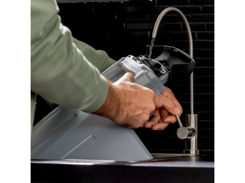 Posuda za čistu vodu je dizajnirana kako bi omogućila jednostavno punjenje i ispražnjavanje bez potrebe za otvaranjem samog uređaja s funkcijom usisavanja rasprška. Zahvaljujući prozirnom i udarnom otpornom izvedbom nudi dug vijek trajanja i izdržljivost.