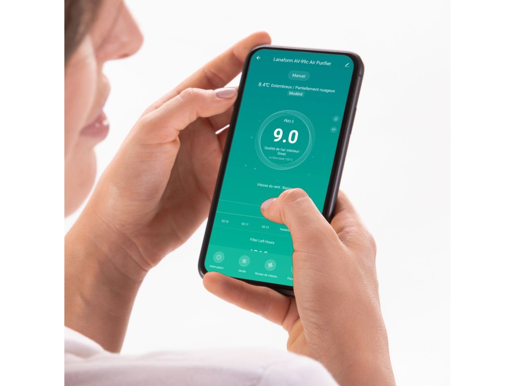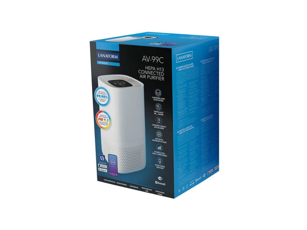 Čistač zraka Lanaform AV-99C učinkovito čisti okolni zrak zahvaljujući trostupanjskom filteru i UV zračenju. Ventilator upija zagađeni zrak, a predfilter zadržava veće čestice (prašinu i druge nečistoće). Formaldehid, benzin i drugi štetni plinovi te neugodni mirisi filtriraju se iz okolnog zraka putem filtera s aktivnim ugljenom. Sitne čestice (npr. polen, alergeni, prašina i dim) filtriraju se kroz HEPA filter. UV svjetlo dodatno uništava mikroorganizme poput mikroba, patogenih organizama, virusa, bakterija i plijesni. Zbog svog specifičnog filtra dodatno doprinosi smanjenju infekcije SARS-CoV-2.