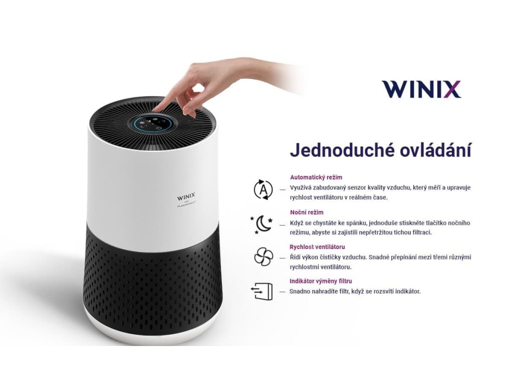 Kompaktni čistač zraka Winix ZERO Compact je idealan za manje do srednje velike prostorije do 50 m². Ima napredni filtracijski sustav koji učinkovit uklanja do 99,97 % lebdećih čestica u domaćinstvu. S učinom 250 m³/h ne samo da pruža visoku učinkovitost, već i jednostavnu prenosivost, jednostavno upravljanje i nisku potrebu za održavanjem. Visoka učinkovitost i vrlo niska potrošnja energije podupiru certifikati.
