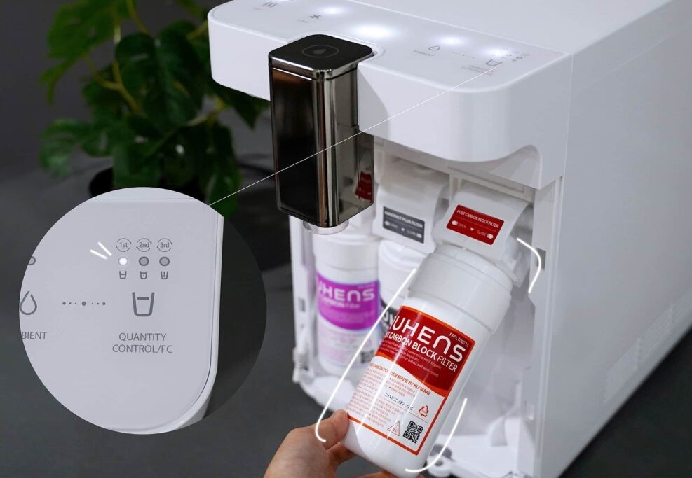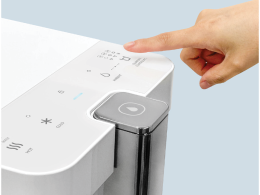 | Moderni dizajn, koji se uklapa u svaku kuhinju. | Uređaj snima okolnu svjetlost i noću isključuje funkcije grijanja i hlađenja vode te smanjuje svjetlost displeja, čime smanjuje troškove struje. | Funkcija sigurnosne brave sprječava neželjeno curenje vode. | ||||