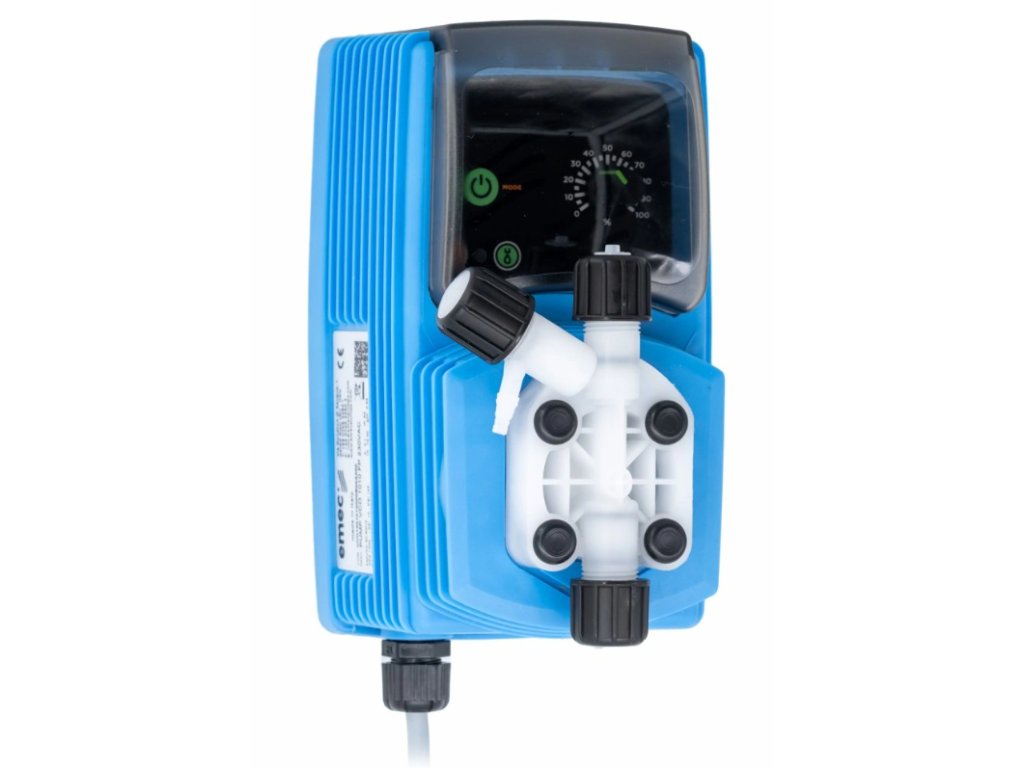 Elektromagnetna dozirna pumpa EMEC VCO je visoko pouzdana naprava za konstantno doziranje kemikalija. Nudi mogućnost postavke brzine pomaka membrane i ima spori režim za smanjenje snage do deseterostruko.
