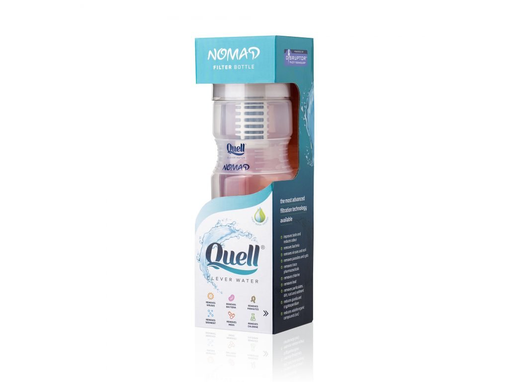 Filtar boca Quell NOMAD će vam biti korisna posebno na putovanjima i svuda gdje niste sigurni u čistoću i sigurnost pitke vode. S jedinstvenom filtračkom tehnologijom Disruptor™, pružit će vam najčistiji mogući izvor pitke vode tako što će ukloniti više od 99,9% svih kontaminanata. Tehnologija koristi aktivni ugalj, srebro, kao i princip elektroadsocepcije. Kvaliteta vode koju ćete filtrirati bit će sigurna i cijenit ćete bolji okus.