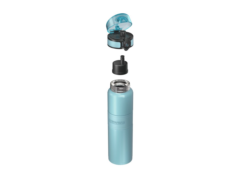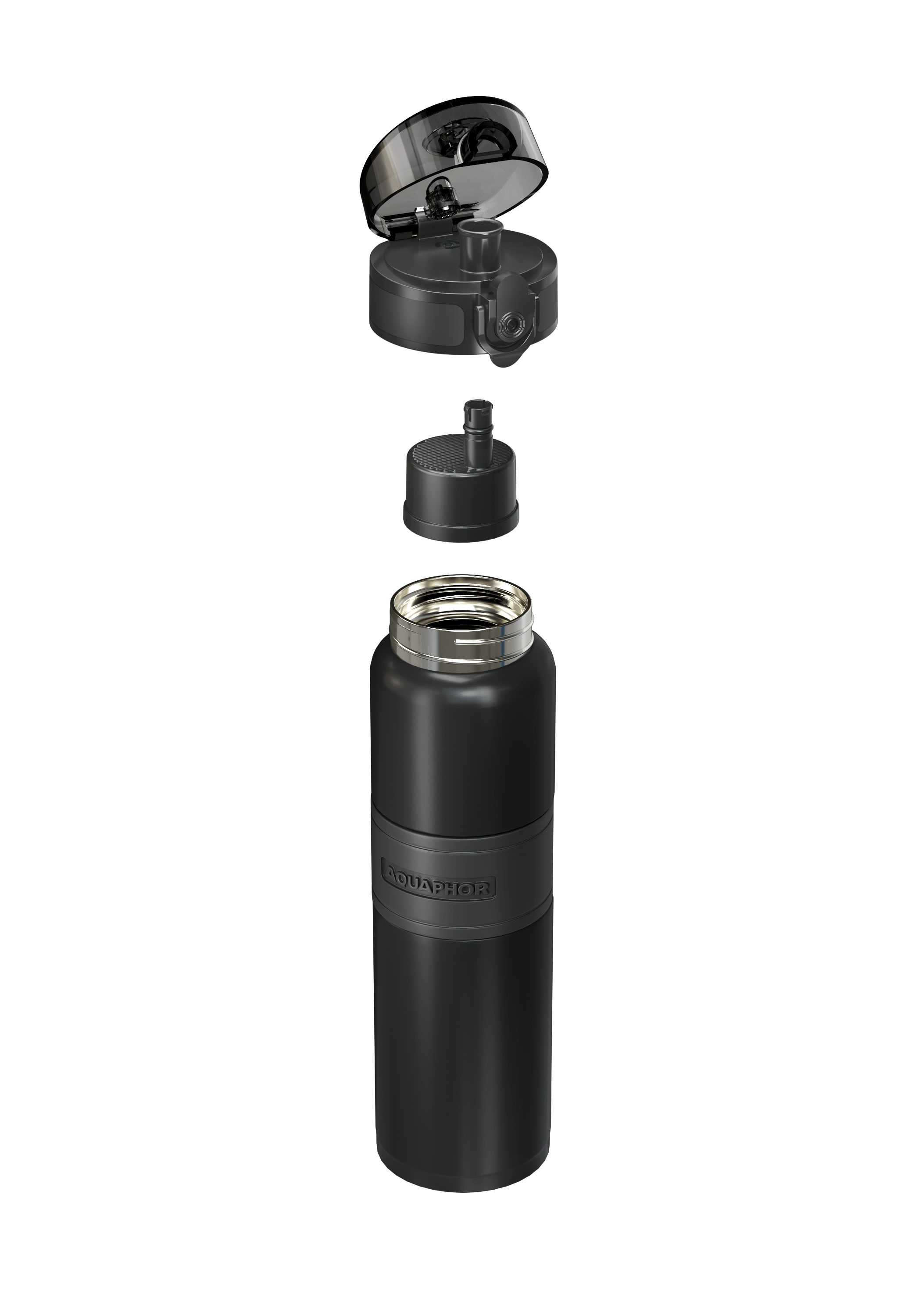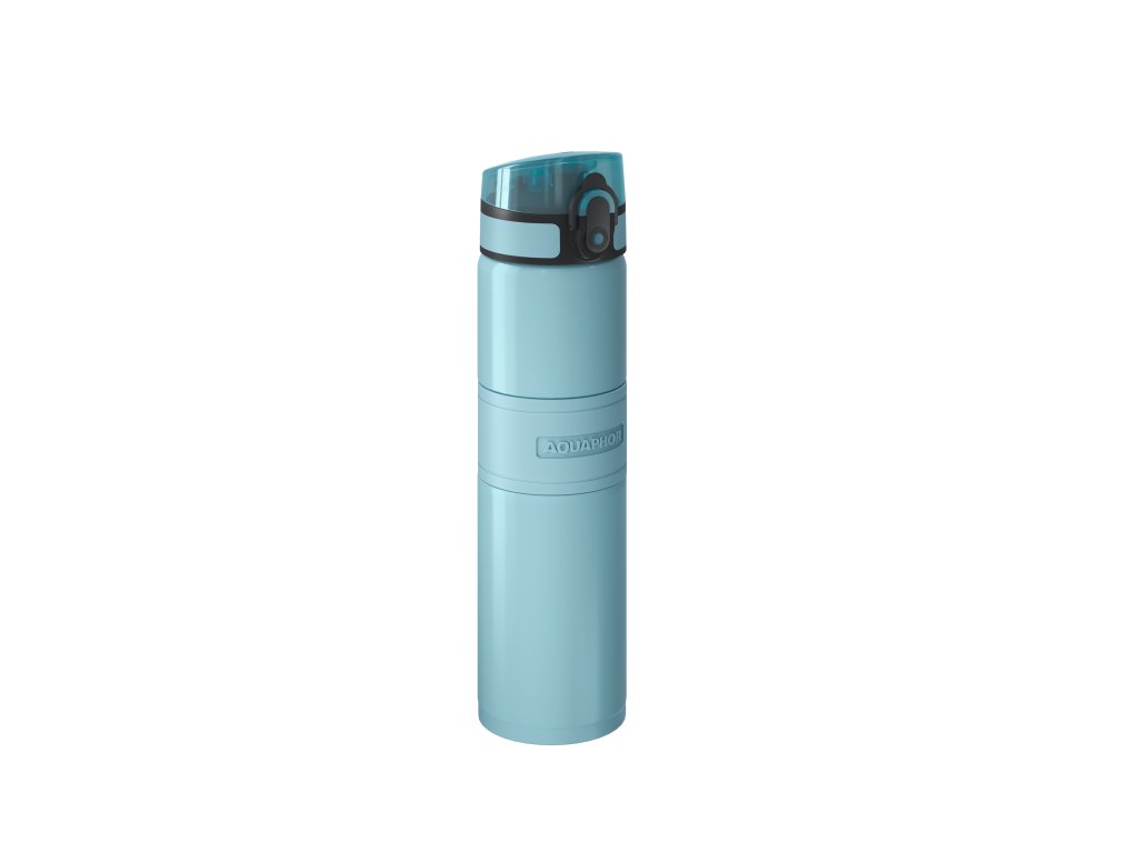 Praktična i stilizirana filtar termo boca AQUAPHOR City Cool s dvostrukim zidom i vakuumskom izolacijom koja drži napitke toplim do 12 sati i hladnim do 24 sati. S obujmom 0,5 l idealna je za svakodnevnu upotrebu – od šetnji gradom i planinarenja do sportskih aktivnosti i poslovnih putovanja.