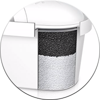 Iz voda iz slavine filtrira mehaničke čestice i učinkovito smanjuje klor i druge nepoželjne tvari koje utječu na okus, vodeni kamen, tragove teških metala, herbicide, pesticide, lijekove i druge nečistoće. Zahvaljujući filtru, rezultantna voda je čišća, ukusnija i mekša.