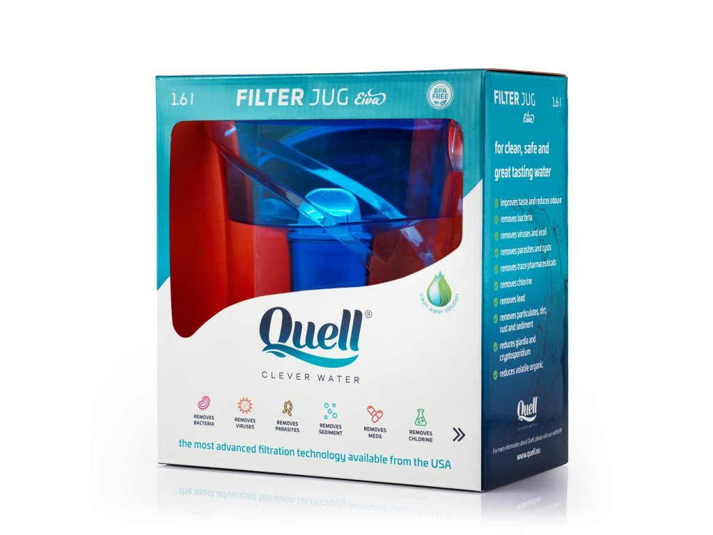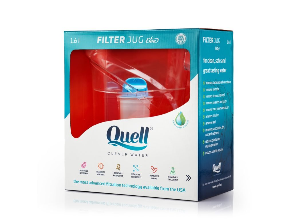 Filtracijska posuda Quell EIVA s kapacitetom 1,6 litara osigurava Vam čistu filtriranu vodu bez mirisa i nepoželjnih tvari. Filtrirana voda se odlikuje svježim ukusom bez klora. Posuda je dostupna u plavoj i bijeloj boji.