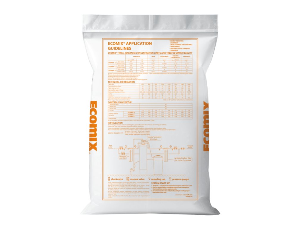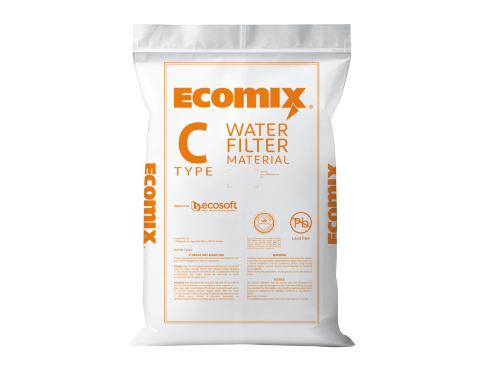 Filtracijska punjenja Ecomix C je vrhunska multifunkcionalna filtracijska smjesa namijenjena za pripremu problematične vode iz mreže i bunarskih voda. Idealna je za vode s višom tvrdoćom, povećanim sadržajem željeza, mangana i amonijskih iona. Osigurava stabilnu kvalitetu vode i uspješno se nosi s sezonskim promjenama u sastavu vode i pri značajnim promjenama kvalitete sirove vode.