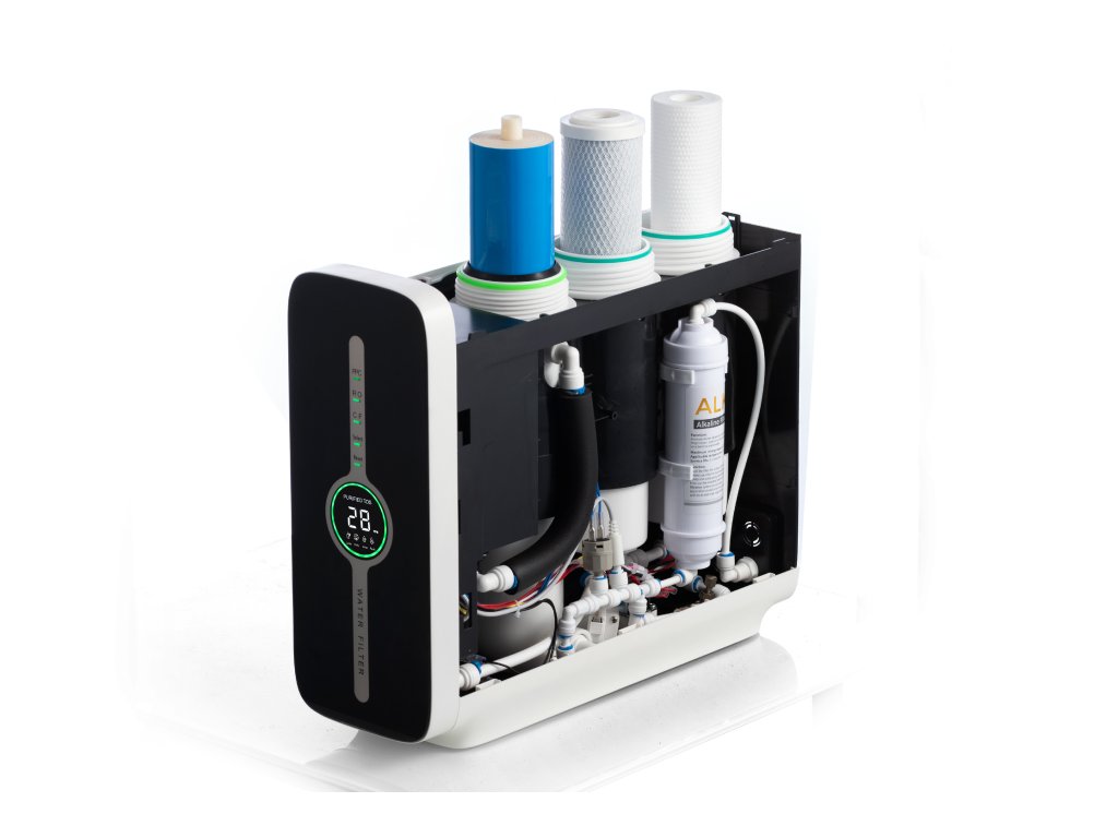Vodikova voda ima iznimne antioxidacijske sposobnosti. Pijenje vodikovih voda značajno povećava otpornost i imunitet organizma. Moćna membrana reverzne osmoze GPD 600 učinkovito zadržava nepoželjne tvari kao što su bakterije, virusi, herbicidi, nitrati, teški metali i ostatne tvari iz farmacije (hormonalna kontracepcija, psihotropne tvari itd.). Osim toga, uređaj proizvodi vodu s niskom ili srednjom mineralizacijom. U paketu se također nalaze pametna vodovodna baterija s digitalnim pokazivačem kvalitete vode i stanja filtara. Prijek vode standardno 1,4 litra u minuti. |