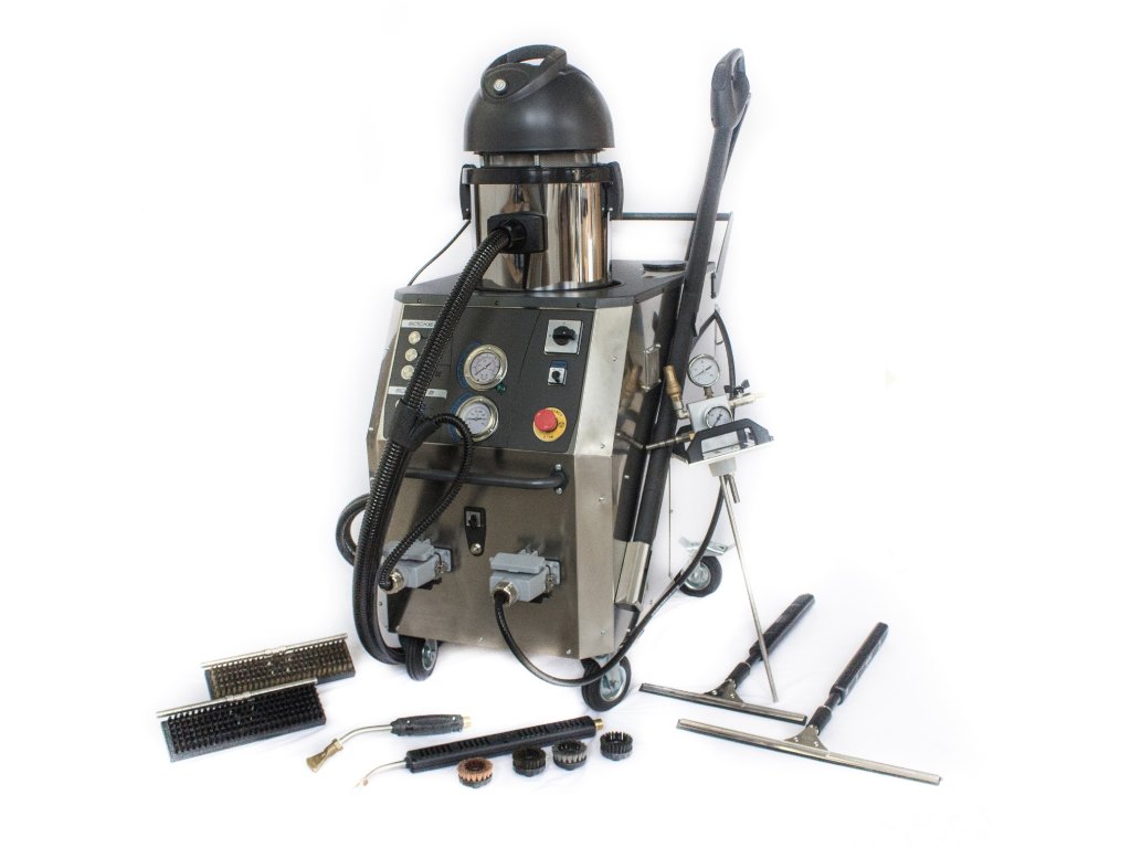 Predstavljamo naš novi model - industrijski parni usisavač PROFI 9000 na 380 V s maksimalnom parnom snagom i mogućnošću priključivanja dviju parnih crijeva istovremeno. Ovaj industrijski parni čistač posebno je razvijen za industrijska poduzeća, poljoprivredna gospodarstva, proizvodnje hrane i pića, skladišta, velike kuhinje i druge velike pogone. Visoka kontinuirana snaga i velika količina pare s tlakom 10 bar i temperaturom pare 190°C zajedno sa snažnim usisavačem osiguravaju maksimalnu učinkovitost i čisti učinak, zajedno s mogućnošću prskanja deterdženta izravno u paru, čime se dodatno povećava učinak pare na jako zaprljane i masne površine. Ovom kombinacijom dobivate maksimalnu iskoristivost i učinkovitost parnog usisavača. Njegova kvalitetna i robusna izrada uvjerit će vas u njegovu snagu i kvalitetu.