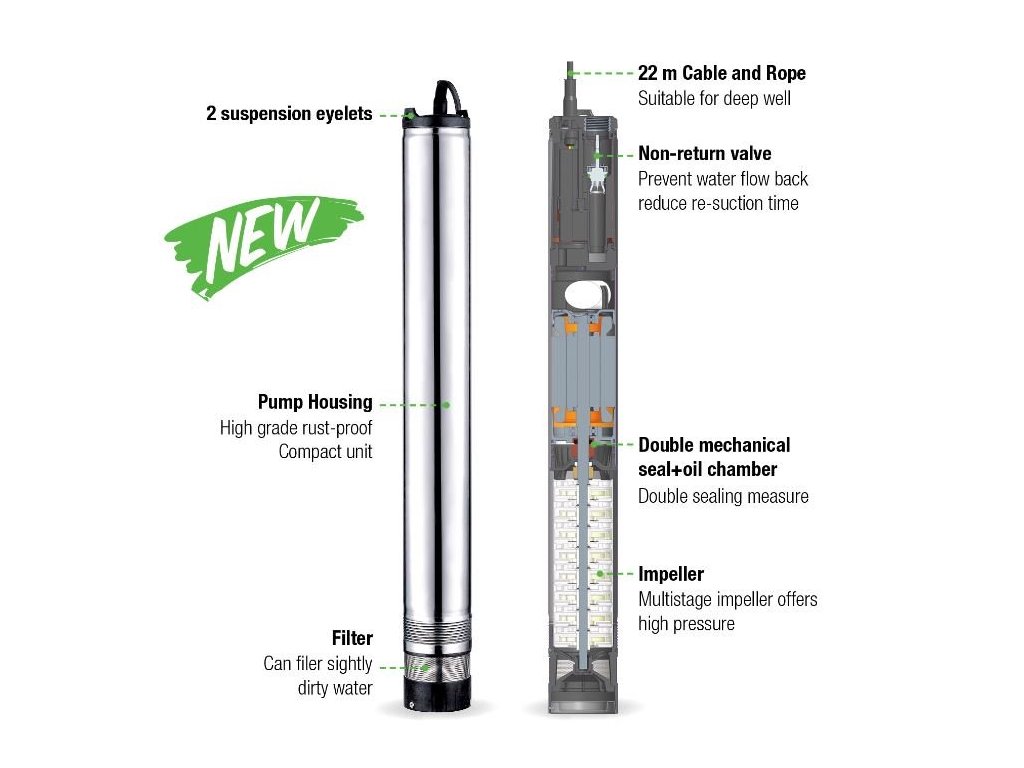 - Dug vijek trajanja zahvaljujući visoko kvalitetnom mehaničkom brtvenju i kućištu pumpe od nehrđajućeg čelika