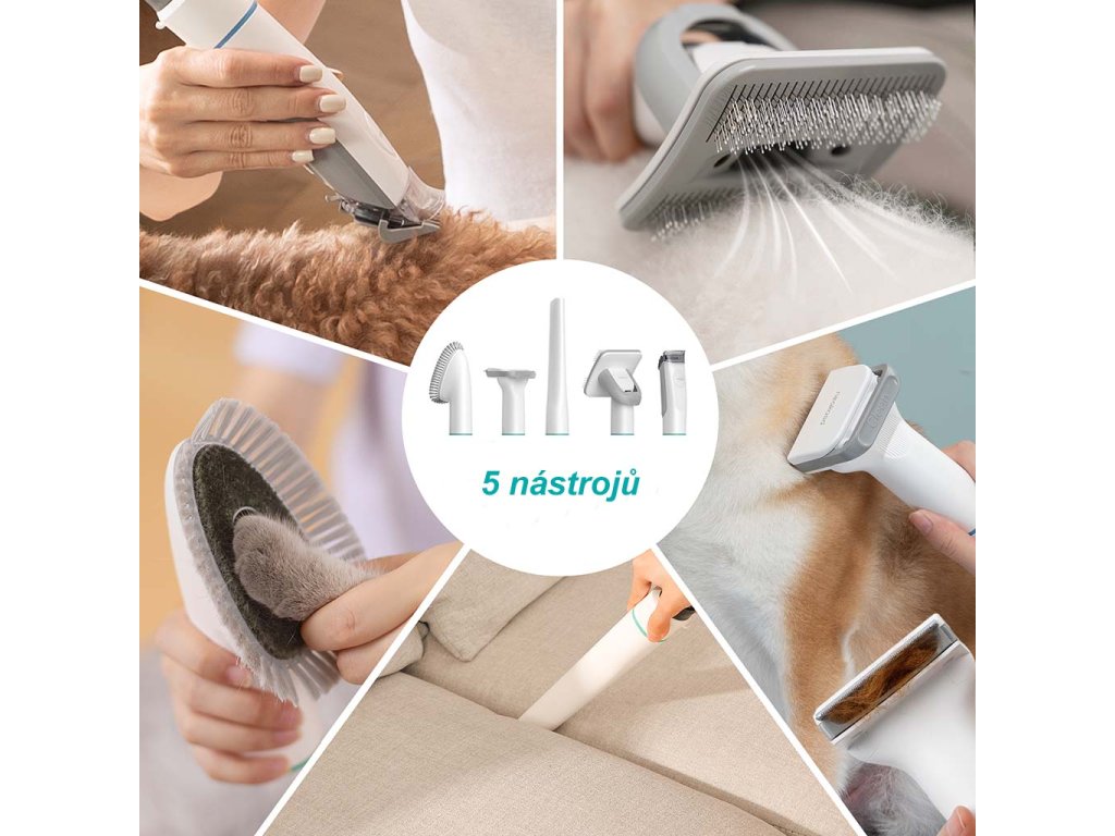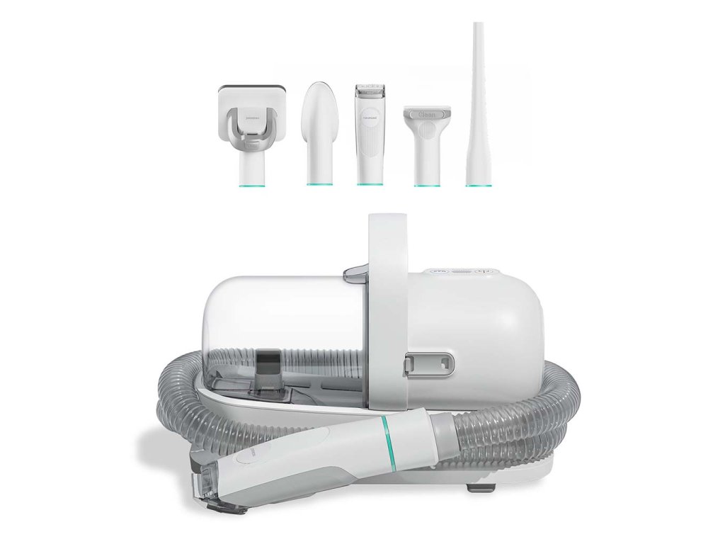 Set s usisavačem uključuje pet različitih nastavaka. Četka za njegu dlake, trimerski češalj DeShedding, električni šišač, usnik za pukotine i četkasti nastavak za lako čišćenje.