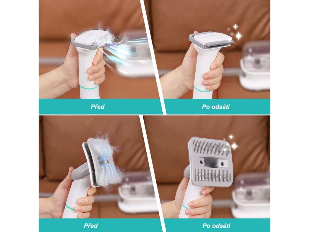 Set za njegu dlake pasa i mačaka Neakasa P1 Pro je dizajniran tako da automatski usisava dlake i dlačice tijekom češljanja i šišanja vašeg kućnog ljubimca u plastičnu posudu koja se može prati. Dlaka ne pada svuda, već se izravno usisava u posudu usisavača. Neakasa P1 Pro pomaže održati dom uvijek čistim i urednim.