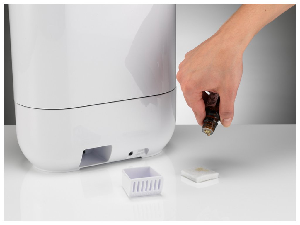 Parfimiranje zraka može se obavljati pomoću malog spremnika na stražnjoj strani uređaja. U spremnik se stavi komadić tkanine, vata ili kozmetički tufer, nakapa se nekoliko kapi omiljenog sredstva i ono se oslobađa tijekom rada ovlaživača. Možete koristiti bilo koje prirodno ili eterično ulje.