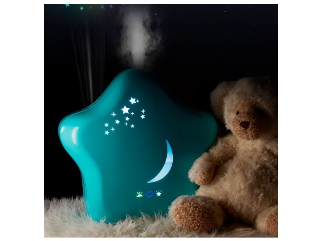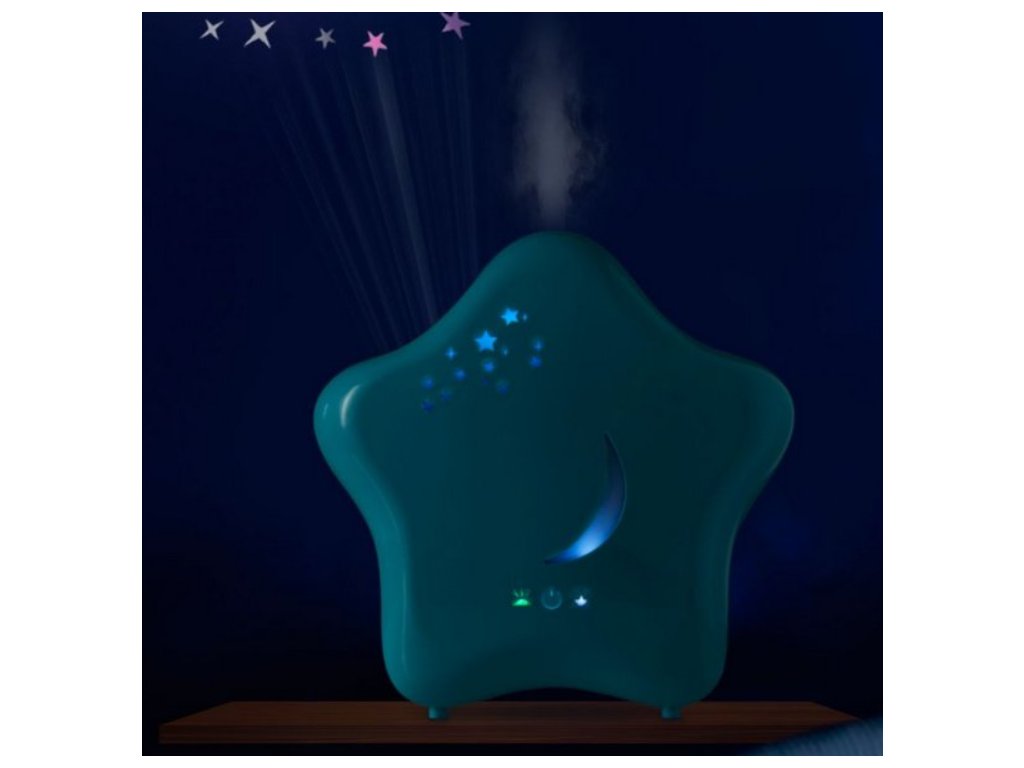 Ovlaživač zraka magična zvijezda Moony pretvorit će dječju sobu u zdravo i umirujuće okruženje prije spavanja. Služi i kao noćna lampica s projekcijom svjetla na strop. Sve funkcije možete koristiti neovisno jedna o drugoj prema potrebama djeteta. Zahvaljujući spremniku za aromatična ulja možete ispuniti dječju sobu umirujućim mirisom.