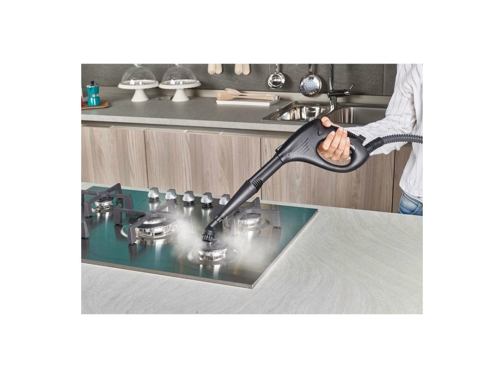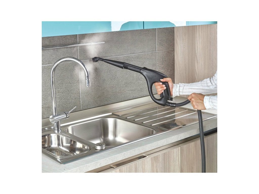 - Koncentrator pare - Idealan za čišćenje kupaonskih dodataka i kupaonica, kuhinjskih ploča i hladnjaka. Zbog zakrivljenog oblika pomaže očistiti i teško dostupna mjesta.