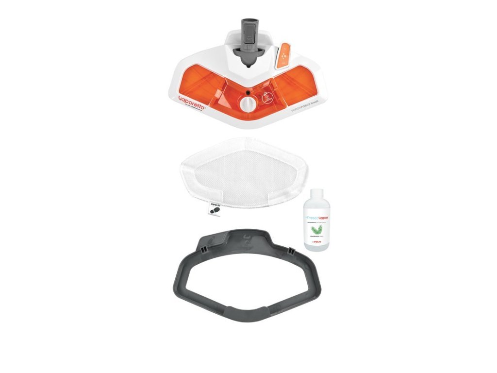 Parni mop Polti Vaporetto SV420 Frescovapor u sebi kombinira parni mop i osvježivač zraka. Zahvaljujući integriranom dozatoru aroma u četki Vaporforce jednim potezom očistite i oplemenite cijeli vaš dom. Čišćenje s njim može svatko – lagan je, kompaktan, ima fleksibilni nastavak i elegantno oblikovanu četku pomoću koje ćete lako i bez poteškoća očistiti i teško dostupna mjesta. Vruća para je vrlo učinkovita, stoga nakon svakog prolaza ovim uređajem ostavljate savršeno čistu i novo izgledajuću površinu. Zagrijava se samo 15 sekundi, stoga je pogodan za svakodnevno, brzo čišćenje. Možete ga koristiti na sve vrste podova: mramor, parket, terakota i ostale pločice, tepisi i slično.