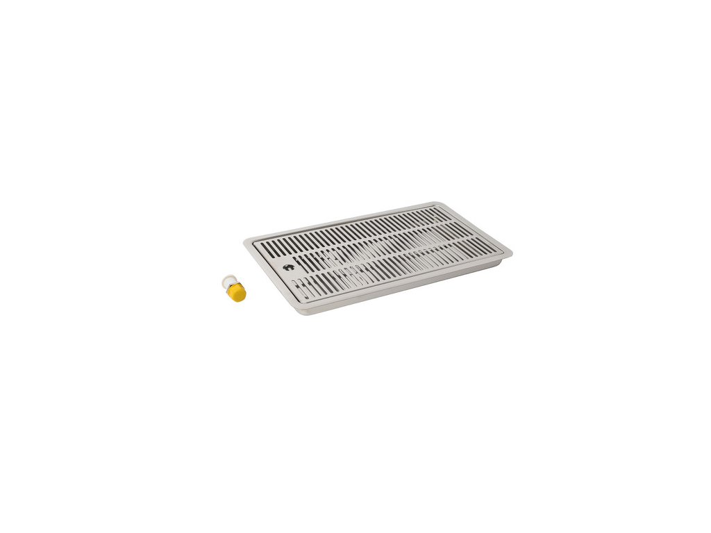 Posuda za kapanje od nehrđajućeg čelika za dozatore TAP U2. Posuda je dostupna u dvije varijante - za povezivanje na odvod ili samostojeća na radnoj površini.