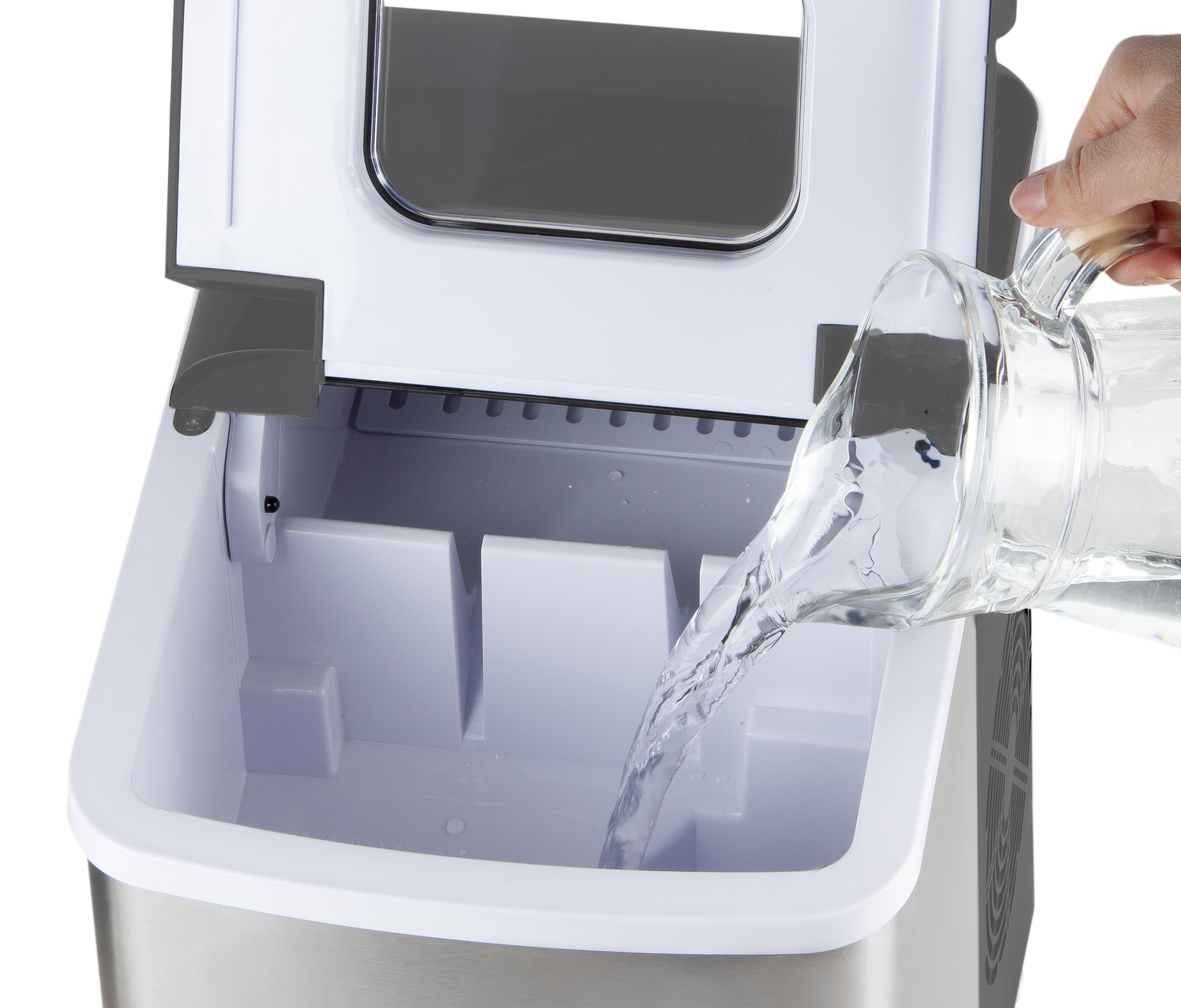 S kapacitetom spremnika 1,8 litara vode osigurava dovoljne zalihe leda i pri većoj potrošnji. Uređaj je opremljen indikatorima koji upozoravaju na punu košaru ledenih kockica ili na potrebu dopune vode. Uređaj je potpuno automatski – nakon vađenja kockica proizvodnja se automatski nastavlja. Jednostavno održavanje omogućuje ispusni otvor na donjoj strani, a za udobno rukovanje ledom u paketu su lopatica i uklonjiva košara. Uređaj radi s vlastitim kompresorom i ekološkim rashladnim sredstvom R600a (25 g). Pouzdano radi i pri višim okolnim temperaturama u rasponu 10 - 43 °C. Moderan izgled upotpunjuje djelomično nehrđajuće kućište a kompaktne dimenzije omogućuju jednostavno postavljanje u kuhinji ili na šanku. |