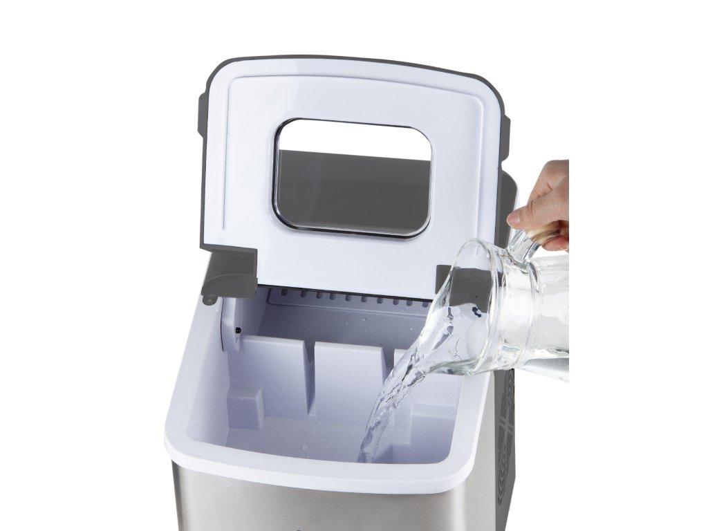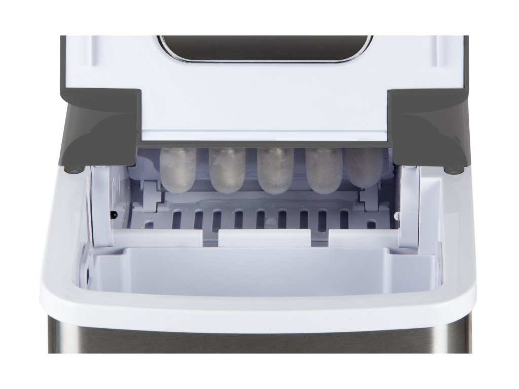 DOMO DO9253IB je praktičan i snažan kućni proizvođač leda s modernim nehrđajućim dizajnom. Predstavlja stylski dodatak svakoj kuhinji, uredu ili vrtnoj zabavi. Uspije proizvesti do 12 kg leda u 24 sata i u jednom ciklusu pripremi 9 ovalnih kockica u približno 8–9 minuta. Prve ledene kockice dostupne su već nakon deset minuta od uključenja.