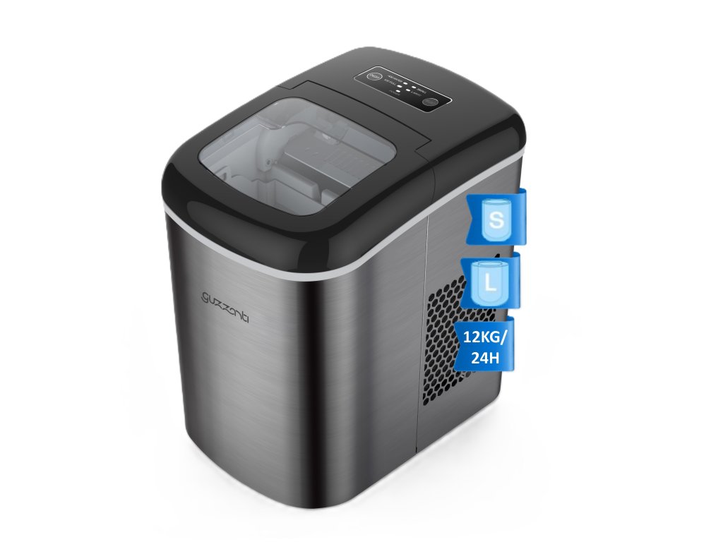 Proizvođač leda Guzzanti GZ 125 osigurat će svježe ledene kockice bilo kada tijekom dana i iznenadit će vas ne samo svojim elegantnim nehrđajućim dizajnom, nego i visokim učinkom. Zahvaljujući proizvodnom kapacitetu do 12 kg leda u 24 sata idealan je ne samo za kućanstva, već i za urede, male objekte ili ugostiteljske smještaje.