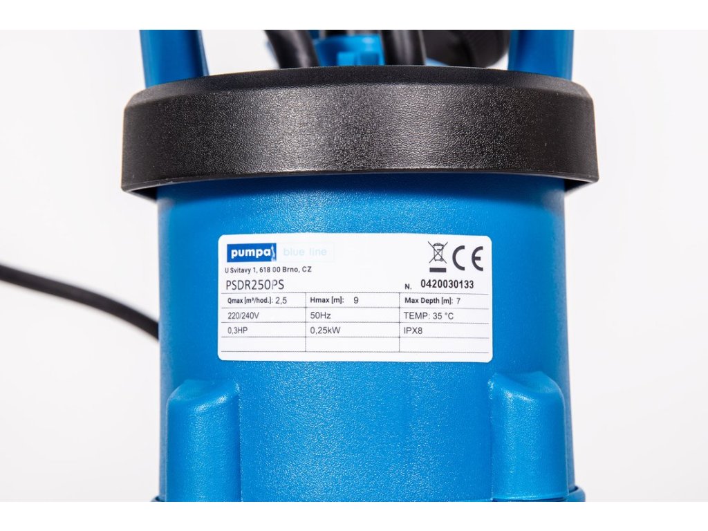 Plastično potopno crpalo s fleksibilnom cijevi i plovnim prekidačem PUMPA blue line PSDR250PS i PSDR550PS. Namijenjeno je ispumpavanju čiste ili blago onečišćene drenažne vode iz bačvi i spremnika. Za navodnjavanje ili prečrpavanje spremnika. Mogućnost usisavanja vode 28 mm od dna. Za jednostavnije postavljanje isporučujemo s 10 m kabelom. Crpalo postiže maksimalnu istisnu visinu do 9 odnosno 20 m.