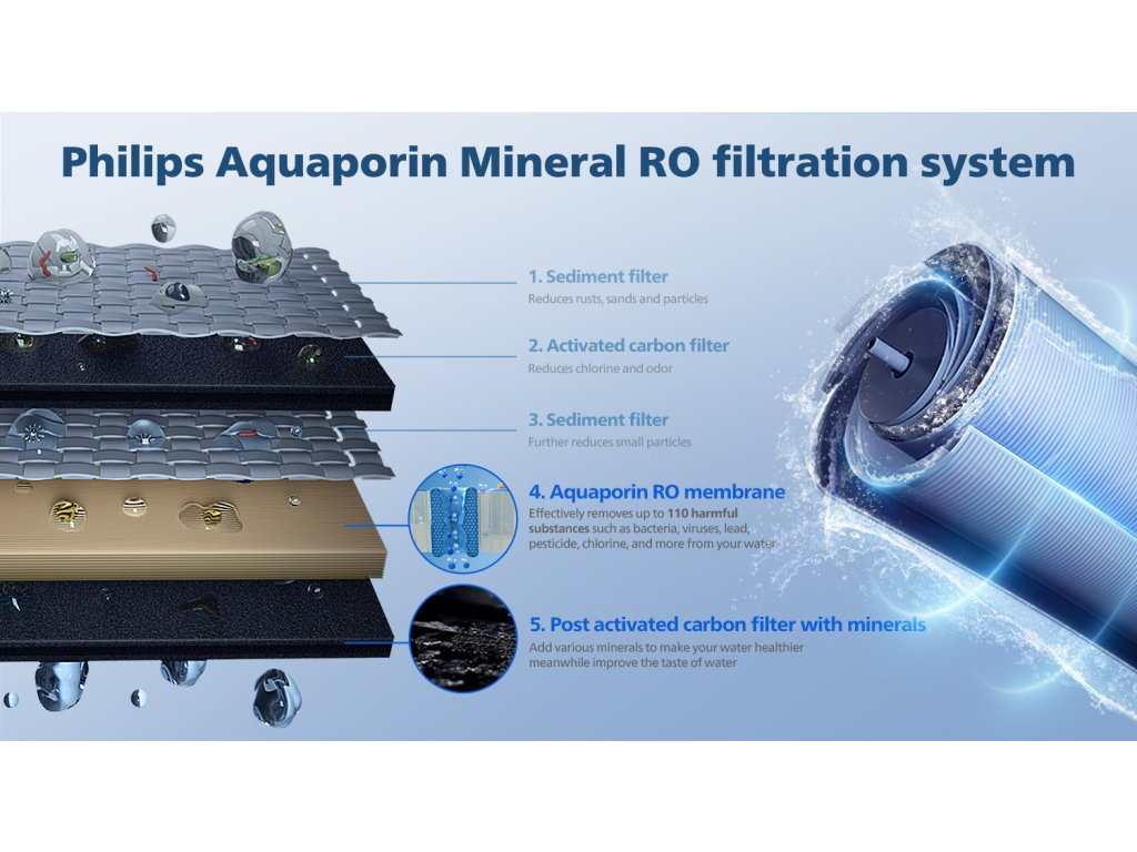 Nakon toga, voda prolazi kroz mineralizacijski filter, koji dodaje minerale, poput stroncija, već filtriranoj vodi kako bi poboljšao njen okus. Na taj način osigurava da voda nije samo čista, već i ugodnog okusa.