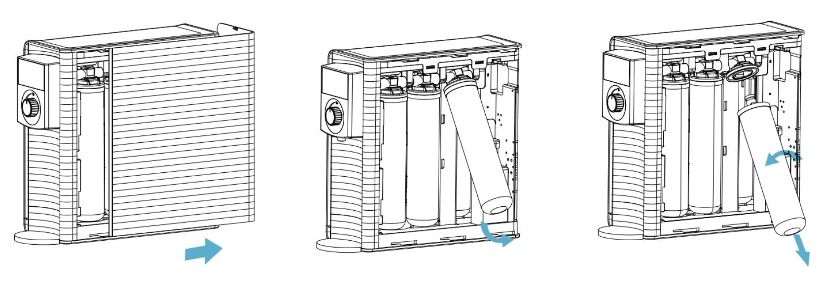 U slučaju da je HYDRON TECH spojen na filtriranu osmoznu vodu, izmjena filtračnih uloška nije potrebna i tehničar će napraviti povezivanje (bypass), čime će isključiti filtračne uloške u uređaju.