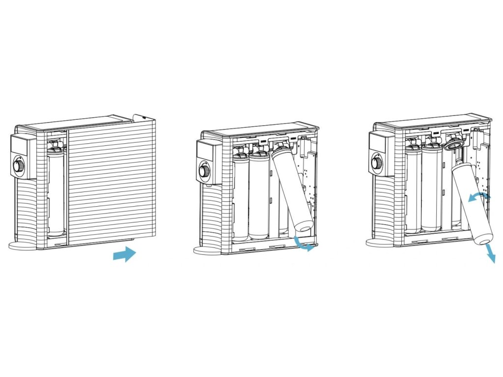 U slučaju da je HYDRON TECH spojen na filtriranu osmoznu vodu, izmjena filtračnih uloška nije potrebna i tehničar će napraviti povezivanje (bypass), čime će isključiti filtračne uloške u uređaju.