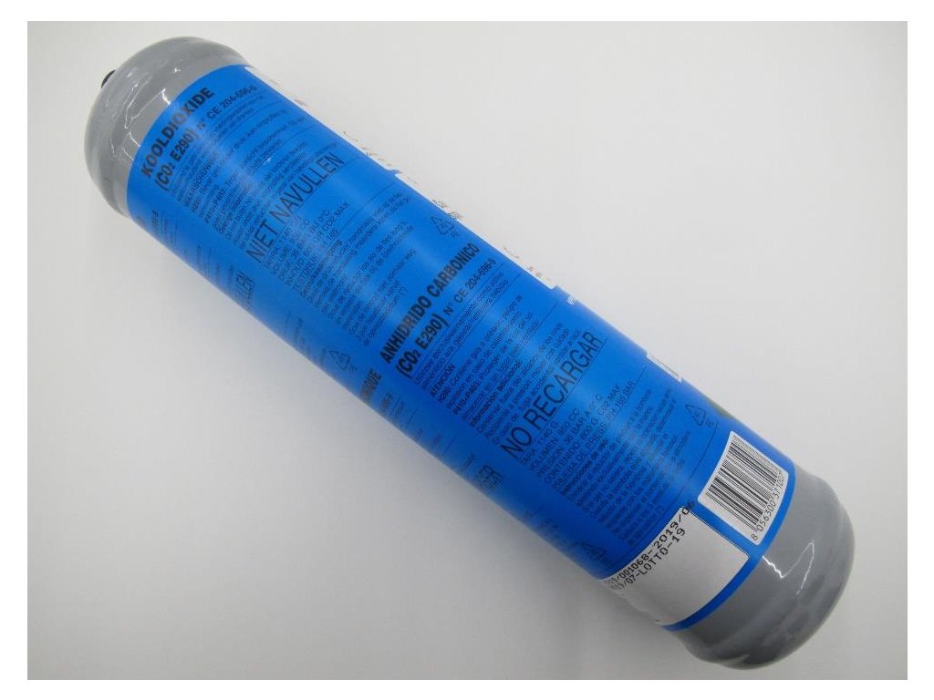 Jednokratna 600 g tla0dna boca s prehrambenim CO2 plinom za karbonizaciju vode ili drugih pi07a. Tlak pri to0denju ne prelazi 2 bara, 0to je dovoljno za pribli7eno 70 60-120 litara vode ili, na primjer, 140 240 piva.