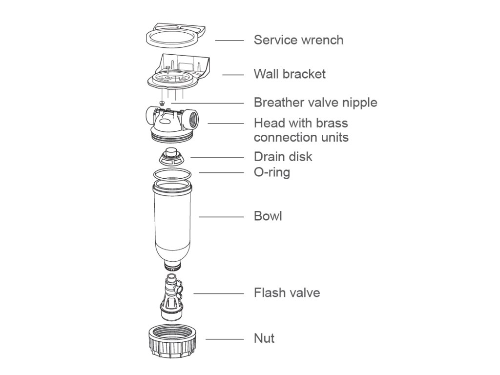 U kombinaciji s filtracijskom uloškom tvori jednostavan filtar koji uklanja iz ulazne vode sve mehaničke nečistoće. Ova filtracija je idealna kao predfiltar za daljnju obradu ili zaštitu uređaja koji zahtijevaju čistu vodu bez mehaničkih nečistoća u vodi poput pijeska, zemlje, gline, kose i drugih netopivih čestica. Osigurava veću udobnost i sigurnost pri korištenju vode za bilo koju namjenu.