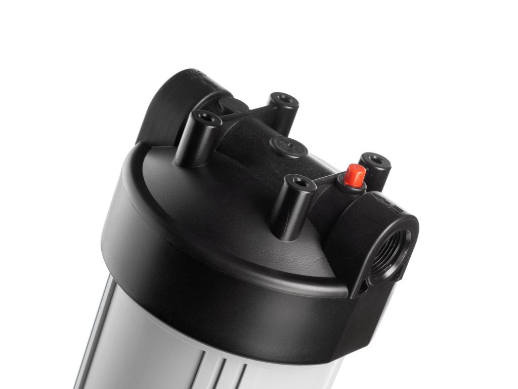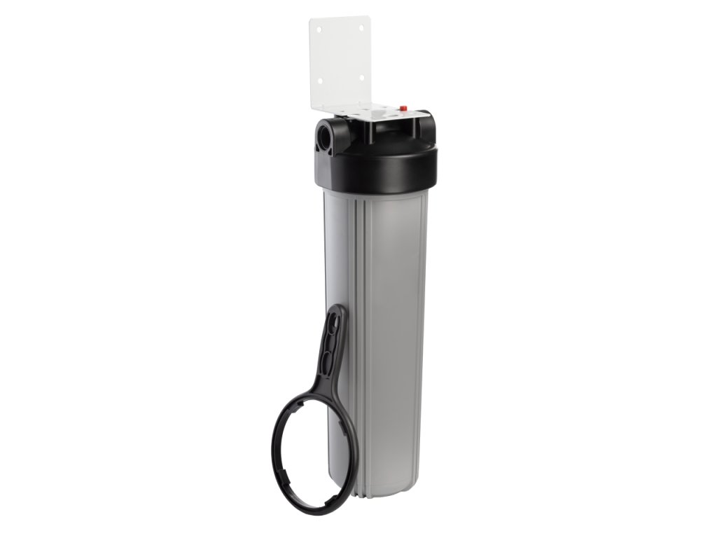 Veliki ugljeni filter FC 20 C s prešanim uloškom 20″ namijenjen pročišćavanju vode u stanovima, obiteljskim kućama i manjim objektima. Filter učinkovito uklanja klor, neugodan miris, zamućenje, kemijske tvari i mehaničke nečistoće, čime osigurava kvalitetniju i zdraviju vodu za cijeli objekt. Maksimalni protok doseže do 83 l/min.