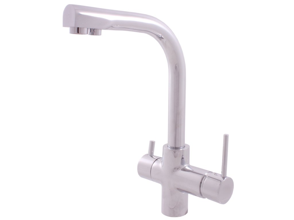 Vodovodna trocestna baterija za filtriranu i vodu iz slavine (toplu i hladnu). Sustav filtrirane vode smješten je u jednom izlazu, gdje je odvojen od tople i hladne vode i ima vlastiti izljev.